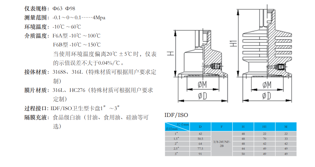 轴向卫生型快装式耐震隔膜表.Φ63MM